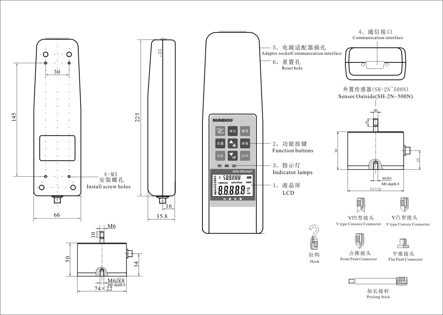 SH-B系列數(shù)顯式推拉力計(jì)是多功能高精度推拉負(fù)荷測(cè)試儀器。分體式設(shè)計(jì),可適用特殊產(chǎn)品的推拉負(fù)荷測(cè)試、插拔力測(cè)試,破壞試驗(yàn)等。數(shù)字顯示分辨率高,使用方便,可連接電腦同步顯示試驗(yàn)力曲線圖及試驗(yàn)過程記錄追溯為新一代高效高精度負(fù)荷推拉測(cè)試儀器。